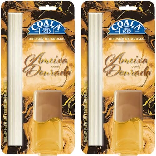 Kit 2 Difusor de Aroma Com Vareta 100ml Coala Ameixa Dourada Aroma: Ameixa Dourada Kit 2 Difusor de Aromas Coala Ameixa Dourada 100ml com Varetas Difusor Coala Ameixa Dourada 100ml com varetas. Perfuma, decora e proporciona um ambiente sofisticado. Essência suave e duradoura. Transforme qualquer ambiente com um toque de sofisticação e bem-estar. O Difusor de Aromas Coala Ameixa Dourada é ideal para quem deseja manter sua casa, escritório ou espaço comercial sempre perfumado com uma fragrância suave e duradoura. Seu design moderno, com frasco elegante e varetas difusoras, alia beleza e funcionalidade, decorando com discrição e charme. Benefícios do Difusor Coala Ameixa Dourada: - Perfume prolongado no ambiente - Fragrância suave, ideal para o dia a dia - Frasco com design decorativo - Acompanha varetas difusoras - Regule a intensidade com a quantidade de varetas - Pronto para uso, fácil de aplicar - Perfeito para salas, banheiros, quartos e escritórios Modo de Usar: 1- Retire a tampa e remova o lacre. 2- Recoloque a tampa externa. 3- Insira as varetas no frasco. 4- Após duas horas, vire as varetas para ativar a difusão do aroma. 5- Inverta as varetas sempre que desejar renovar a intensidade da fragrância. Para uma fragrância mais intensa, utilize todas as varetas. Para um perfume mais suave, utilize menos varetas. Informações Técnicas: - Produto: Difusor de Aromas Coala - Fragrância: Ameixa Dourada - Volume: 100 ml - Marca: Coala Essências Aromáticas - Acompanha: Frasco com tampa + conjunto de varetas - Indicação de uso: Residencial e comercial - Uso recomendado: Aromatização de ambientes - Validade: Vide embalagem Dicas de Uso e Conservação: - Mantenha longe da luz direta do sol e fontes de calor - Evite locais com correntes de ar para não acelerar a evaporação - Não deixe ao alcance de crianças ou animais - Ideal para ambientes de até 20 m. Para locais maiores, utilize mais de um difusor A fragrância enfraqueceu, o que fazer Inverta as varetas para reativar a liberação do aroma. Quanto tempo dura o difusor Depende das condições do ambiente, mas em média de 30 a 45 dias. É possível controlar a intensidade do aroma Sim, basta ajustar a quantidade de varetas no frasco. Pode ser no banheiro Sim, é ideal para qualquer ambiente interno.