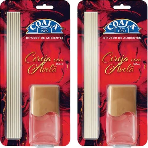 Kit 2 Difusor de Aromas Vareta 100ml Coala Cereja Com Avelã Aroma: Cereja Com Avelã Kit 2 Difusor de Aromas Coala Cereja Com Avelã 100ml com Varetas Difusor Coala Cereja Com Avelã 100ml com varetas. Perfuma, decora e proporciona um ambiente sofisticado. Essência suave e duradoura. Transforme qualquer ambiente com um toque de sofisticação e bem-estar. O Difusor de Aromas Coala Cereja Com Avelã é ideal para quem deseja manter sua casa, escritório ou espaço comercial sempre perfumado com uma fragrância suave e duradoura. Seu design moderno, com frasco elegante e varetas difusoras, alia beleza e funcionalidade, decorando com discrição e charme. Benefícios do Difusor Coala Cereja Com Avelã: - Perfume prolongado no ambiente - Fragrância suave, ideal para o dia a dia - Frasco com design decorativo - Acompanha varetas difusoras - Regule a intensidade com a quantidade de varetas - Pronto para uso, fácil de aplicar - Perfeito para salas, banheiros, quartos e escritórios Modo de Usar: 1- Retire a tampa e remova o lacre. 2- Recoloque a tampa externa. 3- Insira as varetas no frasco. 4- Após duas horas, vire as varetas para ativar a difusão do aroma. 5- Inverta as varetas sempre que desejar renovar a intensidade da fragrância. Para uma fragrância mais intensa, utilize todas as varetas. Para um perfume mais suave, utilize menos varetas. Informações Técnicas: - Produto: Difusor de Aromas Coala - Fragrância: Cereja Com Avelã - Volume: 100 ml - Marca: Coala Essências Aromáticas - Acompanha: Frasco com tampa + conjunto de varetas - Indicação de uso: Residencial e comercial - Uso recomendado: Aromatização de ambientes - Validade: Vide embalagem Dicas de Uso e Conservação: - Mantenha longe da luz direta do sol e fontes de calor - Evite locais com correntes de ar para não acelerar a evaporação - Não deixe ao alcance de crianças ou animais - Ideal para ambientes de até 20 m. Para locais maiores, utilize mais de um difusor A fragrância enfraqueceu, o que fazer Inverta as varetas para reativar a liberação do aroma. Quanto tempo dura o difusor Depende das condições do ambiente, mas em média de 30 a 45 dias. É possível controlar a intensidade do aroma Sim, basta ajustar a quantidade de varetas no frasco. Pode ser no banheiro Sim, é ideal para qualquer ambiente interno.