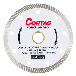 *** KIT EXCLUSIVO COM 2 UNIDADES ***Disco de Corte Diamantado 110x20mm CortagCaracterísticas da Ferramenta:- Disco Diamantado Profissional Premium- Perfil: turbo.- Tipo de corte: seco.Aplicação:- Porcelanato e Cerâmica, Granito e Pedras Decorativas.- Indicado para uso no Cortador Elétrico.Dados Técnicos:- Diâmetro do disco: 110mm- Diâmetro do furo: 20mm- Bucha de redução: 16mm- Peso: 80 gr- Rotação: 14.000 rpmEmbalagem:1 Unidade Disco de Corte Diamantado 110x20mm CortagGarantia:90 Dias oferecido pelo fornecedorEspecificações:Modelo: 60863Código EAN: 7897451468632Código: KIT-76200-2