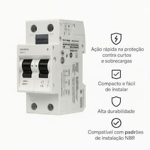Kit 2 Disjuntores Bipolar Siemens Curva B 32A 2 Pólos Kit 2 Disjuntores Bipolar Siemens Curva B 32A é ideal para proteção de circuitos elétricos residenciais, comerciais e industriais leves. Atua interrompendo automaticamente o circuito em casos de sobrecarga ou curto-circuito, garantindo segurança e confiabilidade. Especificações Técnicas