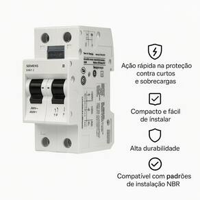 Kit 2 Disjuntores Bipolar Siemens Curva B 32A 2 Pólos Kit 2 Disjuntores Bipolar Siemens Curva B 32A é ideal para proteção de circuitos elétricos residenciais, comerciais e industriais leves. Atua interrompendo automaticamente o circuito em casos de sobrecarga ou curto-circuito, garantindo segurança e confiabilidade. Especificações Técnicas