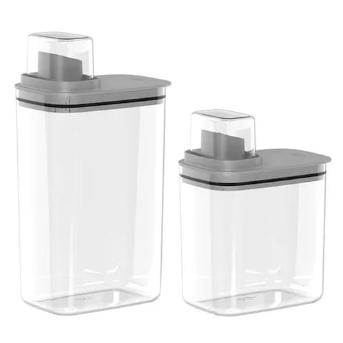 Conjunto 2 dispenser 2,3l e 1,5l organizador lavanderia para sabão e amaciante: este conjunto de dispensers é a escolha perfeita para manter sua lavanderia organizada e funcional. Com capacidades de 2,3 litros e 1,5 litros, esses dispensers são ideais para armazenar sabão líquido, amaciante e outros produtos de limpeza. Seu design moderno e prático facilita o uso e a dosagem dos produtos, garantindo uma lavanderia sempre em ordem.