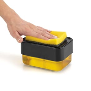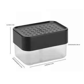 Design moderno e elegante na cor preta, complementa a decoração da sua cozinha. Feito de polipropileno e cristal resistente e durável. Capacidade de 600ml para armazenar bastante detergente. Dosador por pressão evita desperdício e facilita o uso. Mantenha a esponja seca com o suporte integrado.