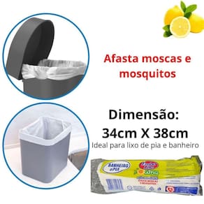 O que você vai receber: Kit com 2 Saco de lixo pia e banheiro citrus com 30un cada. Descrição do Produto: Embalixo Saco de Lixo Pia e Banheiro Citrus 34x38 O Embalixo Saco de Lixo Pia e Banheiro Citrus 34x38 é a solução ideal para quem busca praticidade e eficiência na hora de organizar e descartar resíduos de forma higiênica. Desenvolvido especialmente para ambientes como pia de cozinha, banheiro e áreas pequenas, este saco de lixo oferece resistência, funcionalidade e frescor em um único produto. Modo de Uso: 1. Coloque o saco de lixo no cesto ou suporte destinado ao descarte de resíduos, ajustando-o de acordo com o tamanho do recipiente. 2. Utilize para o descarte de resíduos pequenos e médios, como restos de alimentos, papéis, toalhas, cotonetes e outros itens comuns em banheiros e pias de cozinha. 3. Quando o saco estiver cheio, amarre as extremidades do saco e descarte-o de forma apropriada. Características e Qualidades: Tamanho Ideal: Com dimensões de 34x38 cm, o saco é perfeito para lixeiras de tamanho médio, oferecendo espaço adequado para o descarte sem ser excessivo, otimizando o uso do espaço. Resistência: Fabricado com material de alta qualidade, o Embalixo Saco de Lixo Citrus é extremamente resistente a rasgos e perfurações, mesmo quando carregado com resíduos pontiagudos ou pesados. Isso garante maior durabilidade e evita vazamentos. Aroma Citrus: A fragrância refrescante de citrus proporciona uma sensação de frescor, neutralizando odores indesejados. Ideal para ambientes como banheiros e cozinhas, onde o controle de cheiro é fundamental para manter o ambiente agradável. Além de ter ação repelente afastando os mosquitos e moscas do lixo Praticidade: A embalagem do saco de lixo é fácil de manusear, permitindo a rápida e eficiente. Seu formato facilita o encaixe perfeito na lixeira, sem escorregar ou amassar. Design e Funcionalidade: Seu material flexível se adapta facilmente à forma do recipiente, tornando o descarte de lixo mais simples e sem complicação. Além disso, a qualidade do plástico não prejudica o meio ambiente, sendo mais sustentável. Versatilidade: Pode ser em diferentes tipos de lixeiras: na pia da cozinha, no banheiro, em áreas de serviço ou até mesmo em quartos e escritórios. Seu uso é versátil e eficiente em diversos ambientes da casa. Palavras-chave Saco de lixo Pia e banheiro Citrus Resistente Higiene Prático Aroma refrescante Organize sua casa Antiodor Tamanho ideal 34x38 O Embalixo Saco de Lixo Pia e Banheiro Citrus 34x38 oferece não apenas um produto funcional e resistente, mas também a praticidade necessária para o dia a dia, com um toque de frescor que contribui para ambientes mais agradáveis. Ideal para quem busca eficiência e qualidade em sua rotina de limpeza e organização.