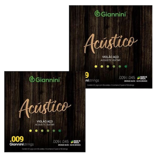 O Encordoamento para Violão de Aço Giannini Acústico com calibre .009 é uma opção ideal para músicos que preferem cordas mais leves, oferecendo uma tocabilidade suave e confortável. Projetado para proporcionar um timbre equilibrado e brilhante, este encordoamento é adequado para uma variedade de estilos musicais, desde acordes suaves até solos expressivos. Principais Características: Calibre .009: As cordas mais leves com calibre .009 são ideais para músicos que buscam facilidade de execução, facilitando bends, slides e técnicas mais delicadas. Bronze Fosforoso: Fabricadas em bronze fosforoso, as cordas oferecem um timbre brilhante, rico em harmônicos, e uma resposta equilibrada entre graves e agudos. Sonoridade Versátil: O Encordoamento Giannini Acústico .009 proporciona uma sonoridade versátil, adequada para uma ampla gama de estilos musicais, desde pop e folk até rock e blues. Tecnologia de Fabricação de Qualidade: As cordas Giannini são conhecidas por sua qualidade de fabricação, garantindo durabilidade e estabilidade tonal, mesmo em condições de uso intensivo. Indicado para Violões de Aço: Projetado especificamente para violões de aço, esse encordoamento maximiza as características sonoras desse tipo de instrumento, oferecendo ressonância e projeção aprimoradas. Excelente Sustain: Com uma resposta tonal equilibrada e sustain notável, este encordoamento permite que os músicos explorem nuances dinâmicas e expressem sua musicalidade de maneira envolvente. Marca Giannini: A Giannini é uma marca reconhecida no cenário musical, sendo conhecida pela fabricação de instrumentos e acessórios de qualidade. O Encordoamento Violão de Aço Giannini Acústico .009 é uma escolha excelente para músicos que buscam cordas leves, tocabilidade confortável e uma sonoridade versátil. Seja você um iniciante ou um músico experiente, este encordoamento oferece uma combinação perfeita de desempenho e qualidade.