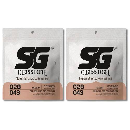 Kit 2 Encordoamento Violão Nylon SG Tensão Média 0.028 -0.043