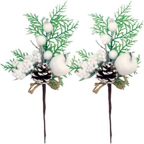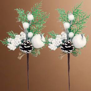 Kit 2 Galhos Pick Berry Nevado Artificial De Natal 29cm