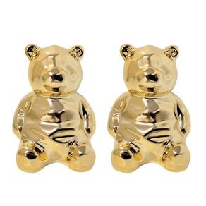-02 unidades Enfeite Urso Decorativo Porcelana Lapidado Dourado Gold 8cm