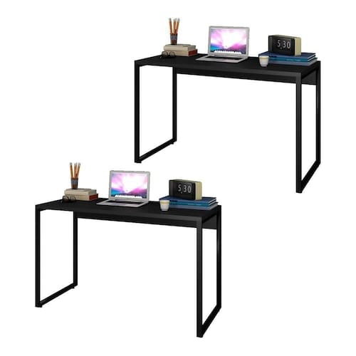 Nesse sentido, o Kit com 2 Mesas Studio Industrial, da Mpozenato, é perfeito, porque as medidas compactas das mesas com 120cm e o design slim, com pés metálicos quadro confeccionados em Tubo de Aço com pintura epóxi cor Preto e também sapatas reguláveis vão deixar qualquer lugar mais bonito, organizado e aconchegante. Já os tampos retos na cor Preto são fabricados em MDP 25mm com acabamento em BP, garantindo maior durabilidade e resistência aos produtos.