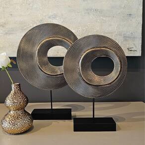 Kit 2 Escultura Abstrata Dourada Decoração Redonda