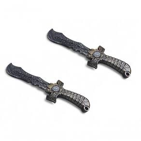 Principais Características:- Modelo: JR0345- Kit com 2 espadas idênticas- Comprimento aproximado de cada espada: 45 cm- Material: Plástico resistente de alta durabilidade- Acabamento em preto e dourado com entalhes estilizados- Empunhadura com brasão de caveira em relevo- Leves, seguras e fáceis de manusear