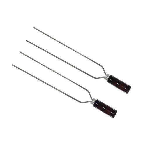 Kit 2 Espetos Duplo para Churrasco 81cm Cabo de Madeira DESCRIÇÃO DO PRODUTO