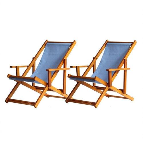 Kit 2 Espreguiçadeira Preguiçosa Dobrável Mel Cb-azul