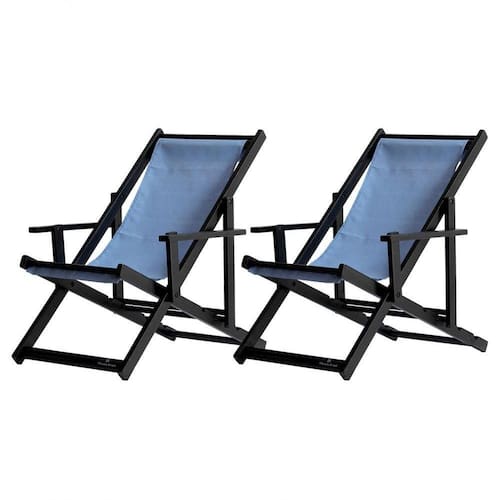 Kit 2 Espreguiçadeiras Dobrável Black Cb-azul 2 ESPREGUIÇADEIRAS ENVERNIZADAS BLACK C/BSabe aquele final de tarde que você tanto espera para tirar um descanso merecido? Ou aquela viagem para a praia programada a meses com a família? Pois é, nossas cadeiras espreguiçadeira serve exatamente para esses momentos, com várias opções de cores, os tecidos além de charmosos são hidro-repelentes e se adequam a qualquer ambiente, facilmente removíveis para higienização.Estrutura 100% de madeira maciça e verniz especial, que garante sua qualidade e durabilidade, a espreguiçadeira é totalmente dobrável e reclinável (4 posições de ângulo), com descanso para braço, sendo possível montar invertida sem o encosto de braço, perfeita para seu lazer em todos os ambientes, seja ele externo ou interno, esse é o item que definitivamente não pode faltar na vida de quem de fato, quer aproveitar bons momentos! FICHA TÉCNICA DO PRODUTO:04 Níveis de Regulagem de Altura;Tecido Reforçado;Fabricada em Madeira Maciça Pinus;Peso aproximado: 7,5 Kg;Suporta aproximadamente 120 kg;Cor da Madeira: Preta Dimensões aproximadas do Produto:Altura 1: 69 cm;Altura 2: 82 cm;Altura 3: 91 cm;Altura 4: 100 cm;Profundidade: 105 cm. Dimensão aproximada total:Comprimento: 135 cm;Largura: 66 cm; Informações Adicionais:Garantia: 90 dias contra defeitos de fabricação.Acompanha 2 cadeiras Obs. A cor pode variar da foto conforme a tonalidade da madeira e iluminação.. !! Marca: Brasil Móveis