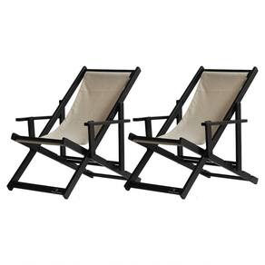 Kit 2 Espreguiçadeiras Dobrável Black Cb-bege 2 ESPREGUIÇADEIRAS ENVERNIZADAS BLACK C/BSabe aquele final de tarde que você tanto espera para tirar um descanso merecido? Ou aquela viagem para a praia programada a meses com a família? Pois é, nossas cadeiras espreguiçadeira serve exatamente para esses momentos, com várias opções de cores, os tecidos além de charmosos são hidro-repelentes e se adequam a qualquer ambiente, facilmente removíveis para higienização.Estrutura 100% de madeira maciça e verniz especial, que garante sua qualidade e durabilidade, a espreguiçadeira é totalmente dobrável e reclinável (4 posições de ângulo), com descanso para braço, sendo possível montar invertida sem o encosto de braço, perfeita para seu lazer em todos os ambientes, seja ele externo ou interno, esse é o item que definitivamente não pode faltar na vida de quem de fato, quer aproveitar bons momentos! FICHA TÉCNICA DO PRODUTO:04 Níveis de Regulagem de Altura;Tecido Reforçado;Fabricada em Madeira Maciça Pinus;Peso aproximado: 7,5 Kg;Suporta aproximadamente 120 kg;Cor da Madeira: Preta Dimensões aproximadas do Produto:Altura 1: 69 cm;Altura 2: 82 cm;Altura 3: 91 cm;Altura 4: 100 cm;Profundidade: 105 cm. Dimensão aproximada total:Comprimento: 135 cm;Largura: 66 cm; Informações Adicionais:Garantia: 90 dias contra defeitos de fabricação.Acompanha 2 cadeiras Obs. A cor pode variar da foto conforme a tonalidade da madeira e iluminação.. !! Marca: Brasil Móveis