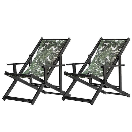 Kit 2 Espreguiçadeiras Dobrável Black Cb-folhas Verdes 2 ESPREGUIÇADEIRAS ENVERNIZADAS BLACK C/BSabe aquele final de tarde que você tanto espera para tirar um descanso merecido? Ou aquela viagem para a praia programada a meses com a família? Pois é, nossas cadeiras espreguiçadeira serve exatamente para esses momentos, com várias opções de cores, os tecidos além de charmosos são hidro-repelentes e se adequam a qualquer ambiente, facilmente removíveis para higienização.Estrutura 100% de madeira maciça e verniz especial, que garante sua qualidade e durabilidade, a espreguiçadeira é totalmente dobrável e reclinável (4 posições de ângulo), com descanso para braço, sendo possível montar invertida sem o encosto de braço, perfeita para seu lazer em todos os ambientes, seja ele externo ou interno, esse é o item que definitivamente não pode faltar na vida de quem de fato, quer aproveitar bons momentos! FICHA TÉCNICA DO PRODUTO:04 Níveis de Regulagem de Altura;Tecido Reforçado;Fabricada em Madeira Maciça Pinus;Peso aproximado: 7,5 Kg;Suporta aproximadamente 120 kg;Cor da Madeira: Preta Dimensões aproximadas do Produto:Altura 1: 69 cm;Altura 2: 82 cm;Altura 3: 91 cm;Altura 4: 100 cm;Profundidade: 105 cm. Dimensão aproximada total:Comprimento: 135 cm;Largura: 66 cm; Informações Adicionais:Garantia: 90 dias contra defeitos de fabricação.Acompanha 2 cadeiras Obs. A cor pode variar da foto conforme a tonalidade da madeira e iluminação.. !! Marca: Brasil Móveis
