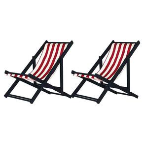 Kit 2 Espreguiçadeiras Dobrável Black Sb-l Verm/branco 2 ESPREGUIÇADEIRAS ENVERNIZADAS BLACK S/BSabe aquele final de tarde que você tanto espera para tirar um descanso merecido? Ou aquela viagem para a praia programada a meses com a família? Pois é, nossas cadeiras espreguiçadeira serve exatamente para esses momentos, com várias opções de cores, os tecidos além de charmosos são hidro-repelentes e se adequam a qualquer ambiente, facilmente removíveis para higienização.Estrutura 100% de madeira maciça e verniz especial, que garante sua qualidade e durabilidade, a espreguiçadeira é totalmente dobrável e reclinável (4 posições de ângulo), perfeita para seu lazer em todos os ambientes, seja ele externo ou interno, esse é o item que definitivamente não pode faltar na vida de quem de fato, quer aproveitar bons momentos! FICHA TÉCNICA DO PRODUTO:04 Níveis de Regulagem de Altura;Tecido Reforçado;Fabricada em Madeira Maciça Pinus;Peso aproximado: 7,5 Kg;Suporta aproximadamente 120 kg;Cor da Madeira: PretaAcabamento: Envernizada Dimensões aproximadas do Produto:Altura 1: 69 cm;Altura 2: 82 cm;Altura 3: 91 cm;Altura 4: 100 cm;Profundidade: 105 cm. Dimensão aproximada total:Comprimento: 135 cm;Largura: 60 cm; Informações Adicionais:Garantia: 90 dias contra defeitos de fabricação.Acompanha 2 cadeiras Obs. A cor pode variar da foto conforme a tonalidade da madeira e iluminação..