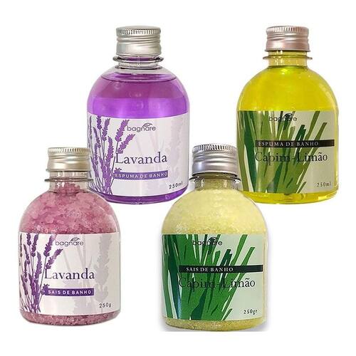 Kit com 4 unidades de 250ml cada sendo 2 Espumas para Banheira + 2 Sais De Banho Espumante Lavanda e Capim limão LAVANDA - , relaxante, combate a insônia e equilibra as emoções. CAMPIM LIMÃO - , cítrico, refrescante & revitalizante - Com ativo natural - Sem parabenos - Sem origem animal - Formulação de Qualidade superior, bom rendimento, fragrância agradável, oferecendo bem estar E relaxamento. Sais Para Banho relaxa e suaviza a pele do corpo, tornando seu banho num Momento de prazer, repondo suas energias. Quando em infusão na banheira, Proporcionam uma forte sensação relaxante e . Modo de usar: Coloque quantidade suficiente em água morna dos Sais para Banho Capim Limão ou Lavanda, deixe-se relaxar e sinta seus benefícios. Espuma para banho banheira proporciona espuma cremosa, permanece por muito Tempo sobre a água com uma agradável fragrância. Quando em infusão na banheira, proporciona uma forte sensação relaxante E . Modo de usar: 1º Encher a banheira com a agua 2º ligar a hidromassagem 3º Coloque quantidade suficiente da espuma para banheira em água morna. Deixe-se relaxar e sinta seus benefícios. Kit Acompanha: 1 Sal De Banho para Banheira Lavanda 250g 1 Sal De Banho para Banheira Capim Limão 250g 1 Espuma De Banho e Banheira Lavanda 250ml 1 Espuma De Banho e Banheira Capim Limão 250ml Produto não testado em animais. Marca: Não Informado Ean: 7890745614234