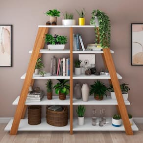 O Kit 2 Estante Multiuso Decorativa 5 Prateleiras Stela A06 Freijó/Branco, da Mpozenato, é perfeito para adicionar um toque de estilo moderno à sua casa.
