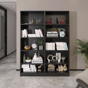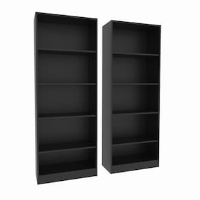 Estante Multiuso ME4141, possui prateleiras com amplo espaço para armazenar diversos itens e objetos. Material em MDP e acabamento em BP. Imagem meramente ilustrativa. A decoração do ambiente não acompanha o produto, produto é entregue desmontado, novo, acompanha nota, manual de montagem e ferragem. Altura do Conjunto: 160 cm Ambiente: Escritório Ambiente Principal: Escritório Cor: Preto Informação Complementar: 2x Estante 59,6cmx160cm 4 Prateleiras ME4141 Preto Largura: 59,8 cm Altura: 160 cm Profundidade: 25,5 cm Necessita Montagem: Sim