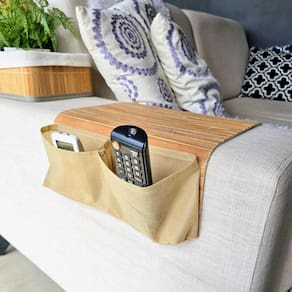 Desfrute de Conforto Natural: Esteira de Bambu para Braço de Sofá com suporte para controle remoto Com Bag . extremamente fina, confortável e resistente.