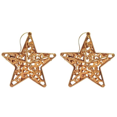 Kit 2 Estrelas Vazadas Tridimensionais Arabesco Bronze Metalizado 10,5cm – Enfeite Natalino com Cordão