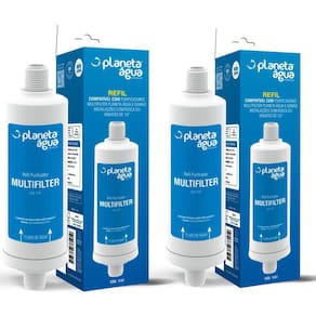 Kit com 2 unidades de filtro.Econômico, o Refil Multifilter se destaca pela versatilidade e variedade de aplicações. Pode ser utilizado em diversas finalidades, como: banheiro, cozinha, cafeteiras, tanques e muito mais, oferecendo água pura e cristalina. Um produto não só para manter a saúde, como também o bem-Estar e beleza.Benefícios do ProdutoAplicável em bebedouros, cafeteiras, lava-Louças, pias de cozinha e pias de banheiroUm purificador, várias aplicaçõesPraticidadeFácil de instalar3 etapas de filtragemEconomize espaço e tenha água filtrada onde você quiserMuito mais economia 1 refil = 300 galões de 20 litros de água mineral ou 12.000 garrafas pet de 500 ml Características TécnicasCódigo:1137Vida Útil: 6000 litrosVazão: 75 litros/horaRetenção de Partículas: Classe D 15 a 30 micra Dimensões da Embalagem: 275x169x80 mmDimensões do Produto: 195x59x59 mmPeso Líquido: 0,250 kgPeso Bruto: 0,320 kgTemperatura de Operação: 1 a 40 °CPressão de Operação:29 a 392 kPa 3 a 40 mca Código de Barras: 789861478404000Garantia: 06 mesesCom Redução de Cloro Livre