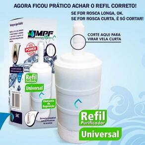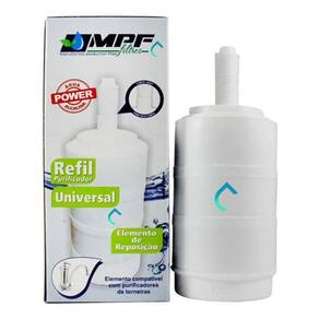 Kit 2 filtro refil torneira filtro bica móvel compatível lorenzetti acqua bella vitalle imperatriz delta herc forusi Kit com 2 peças - refil universal compatível com torneiras com filtro Compatível com os seguintes modelos: lorenzetti acqua bella, vitalle, imperatriz, delta, herc, forusi, ellen, sap, viqua e+, whilcla, entre outros. Serve nos filtros que usam rosca longa ou curta. Caso sua torneira use o filtro com rosca curta, basta cortar a rosca no ponto já indicado, assim ele servirá perfeitamente. A vela universal alcalina da mpf filtros, foi lançada com objetivo de deixar a sua água alcalina, que ajuda a equilibrar o ph do corpo, melhorando assim o nosso sistema imunológico e aumentando a capacidade do organismo em prevenir diversas doenças. O refil/vela da mpf filtros é o único que pode ser utilizado tanto como rosca curta como rosca longa, pois contém um sistema de corte simples no topo do elemento, identificado em sua caixinha para a fácil percepção do cliente. A vela/filtro, assim comumente chamada, conta com 4 etapas de filtragem, são elas: 1º polipropileno - retém partículas como barro, areia, ferrugem, entre outros contaminantes presentes na água. 2º carvão ativado com sais de prata - reduz gostos, odores e cloro, devido ao carvão ativado com prata que faz o papel de inibir a proliferação de bactérias. 3º alcalinização da água - aumento do ph da água, deixando-a ideal para o consumo humano. 4º polipropileno - clarifica a água em seu estágio final para que a mesma fique cristalina. Este refil/vela é um elemento de reposição compatível com purificadores de torneira. A troca é recomendada a cada 6 meses ou após percepção da diminuição do fluxo de água da torneira. Ficha técnica: Compatibilidade: purificadores de torneira Vida útil: 1.500 litros ou 6 meses Pressão de operação: 0,3 a 4,0 kgf/cm 3 a 40 mca Vazão: 20 litros/hr Retenção de partículas: classe c 5 a 15 micras Retenção de cloro livre: aplicável O filtro remove o cloro da água, elimina sabores, retém partículas de sujeira, barro, ferrugem, entre outras partículas. As marcas e produtos citados e ilustrados são propriedades de seus respectivos fabricantes e aparecem apenas para demonstrar a compatibilidade deste produto. Marca do refil: mpf Modelo: vela universal Eficiência da retenção de partículas: classe iii Eficiência da redução de cloro livre: aprovado Produto de acordo com a abnt nbr:16098:2012. Prazo de validade indeterminado até sua instalação. Pode guardar tranquilo O prazo para troca do refil passa a ser contado apenas após sua instalação. total contra defeitos de fabricação por um período de pelo menos 3 meses. O elemento filtrante pode saturar antes de sua vida útil prevista dependendo das condições da água de onde será instalado, como excesso de barro, areia, ferrugem e outras impurezas sólidas.