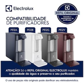 Atenção!O chamado refil compatível não é testado e aprovado pela Electrolux e coloca em risco tanto a qualidade da água que você toma como a vida útil e desempenho do seu Purificador Electrolux. Fique atento!