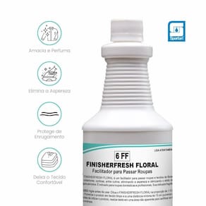 Finisherfresh floral é um facilitador para passar roupas e tecidos de fibras naturais e sintéticas presentes em toalhas, lençóis, edredons, Cobertores, cortinas, entre outros, eliminando a aspereza e otimizando o efeito de passadoria, deixando os tecidos macios e perfumados por Longos períodos.