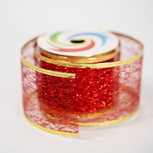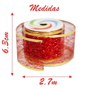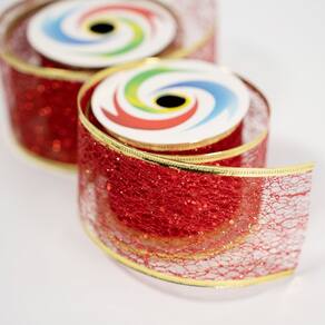 Kit 2 Fita Aramada Vermelha Decoração Natalina 6,3cm x 2,7m