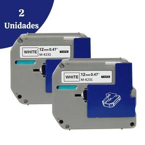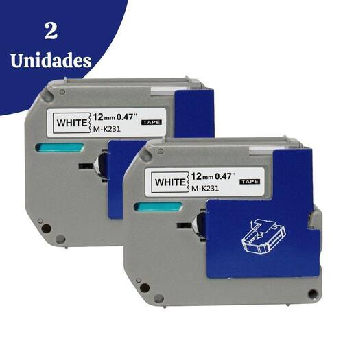 Essas fitas são compatíveis/similares ao modelo Brother M231 M-K231 e possuem largura de 12mm. A cor da etiqueta é branca, com letras na cor preta, proporcionando uma boa legibilidade.