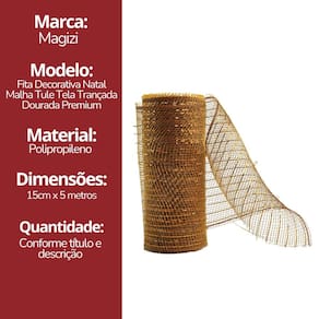Transforme sua decoração natalina em um verdadeiro espetáculo de brilho e sofisticação com a fita decorativa natalina em tela tule trançada dourada. Com 15cm de largura e 5 metros de comprimento, este modelo é perfeito para criar laços volumosos, entrelaçar em árvores de Natal, decorar guirlandas, arranjos de mesa e até embrulhos de presentes especiais.