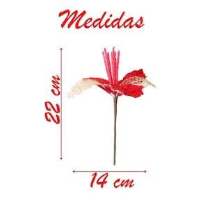 Kit 2 Flores Vermelhas Com Cabo Artificial Decoração De Natal Com Glitter 22cm -