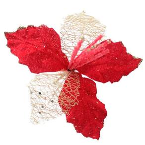 Kit 2 Flores Vermelhas Com Cabo Artificial Decoração De Natal Com Glitter 22cm