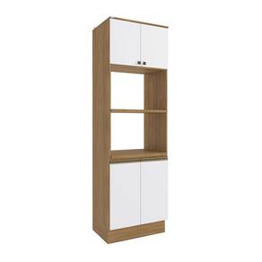 Sua cozinha com toda a beleza e praticidade do Kit Forno e Microondas N730 da Cozinha Celeste da Kappesberg. Produzido em chapa MDF de 15mm, ele garante robustez, firmesa e qualidade, além de um acabamento perfeito. Com sete camadas de pintura tanto na parte interna quanto na externa, a caixaria possui pintura touch na cor nogueira, contando com a textura dos veios da madeira, enquanto que as portas, com pintura na cor branca, possuem acabamento em brilho. Uma combinação linda e moderna, que garantirá mais luminosidade e aconchego ao espaço, deixando sua cozinha perfeita. A peça ideal para quem busca por otimização de espaço, contando com quatro portas e três prateleiras, além de prateleiras reforçadas em 25mm para eletrodomésticos, como forno e microondas. Fechando ótimas combinações com balcões e aéreos, o destaque fica para as dobradiças com amortecimento, garantindo um fechamento suave e sem ruídos, incluindo mais durabilidade. E seus puxadores metálicos na cor dourada completam o design e a qualidade da cozinha, deixando seu ambiente ainda mais estiloso. Renove seu espaço e o deixe ainda mais completo com a Cozinha Celeste da Kappesberg.