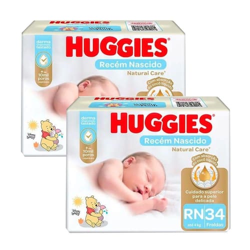 O Kit 2 Fraldas Huggies Natural Care Rn Mega - 68 Tiras oferece proteção e o máximo de conforto ao seu bebê, pois possui alto poder de absorção e proteção por muito mais tempo. Conta com a tecnologia TripleSec que permite que a fralda fique mais seca, tenha maior absorção e um melhor sistema anti vazamento, isso sim é uma Tripla Proteção Garantida. As perninhas agora contam com 2 elásticos que ajuda a evitar vazamentos. A fralda possui também fechos macios com sistema abre e fecha e é dermatologicamente testada. Ean: 0000000000017