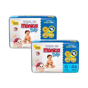 Kit Contém: 2 Pacotes de Fraldas Turma da Mônica Baby Mega G com 44un cada