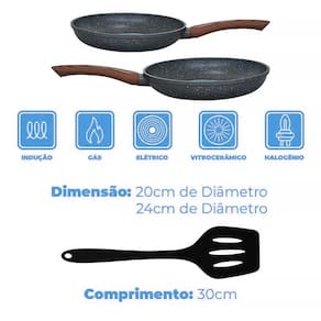Kit 2 Frigideiras e Espátula Revestimento Nanoceramico Granito 20cm e 24cm A1003-F02 - Lehaví - Dorémi Casa e Decor