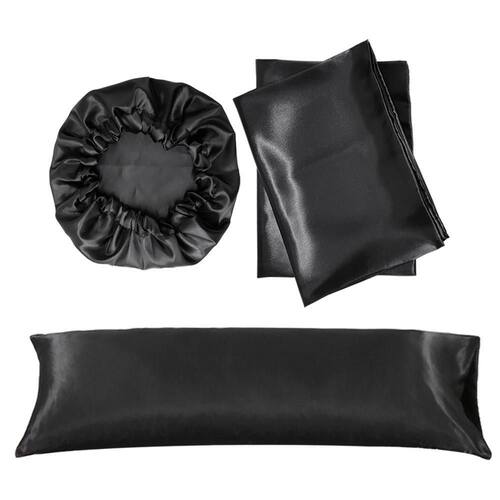 Contém: 01 Touca 02 Fronhas 50cm x 70cm Capa Xuxão 1,30m x 0,40cm Tecido: Cetim Seda / 100% Poliéster Cor: Preto Atende Almofadas com Dimensão de até 1,40m x 0,45cm