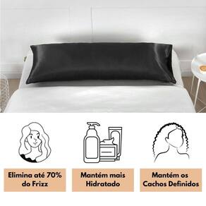 Contém: 01 Touca 02 Fronhas 50cm x 70cm Capa Xuxão 1,30m x 0,40cm Tecido: Cetim Seda / 100% Poliéster Cor: Preto Atende Almofadas com Dimensão de até 1,40m x 0,45cm