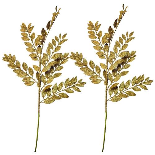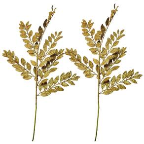 Kit 2 Hastes Folhagem Natalina Decor Dourado com Glitter 85cm