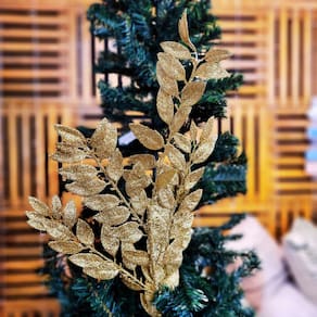 Adicione brilho e sofisticação à sua decoração de Natal com a elegante Haste Folhagem Natalina Decorativa Dourado com Glitter. Ideal para compor arranjos, guirlandas, árvores de Natal ou centros de mesa, essa haste proporciona um toque especial e luminoso, elevando a composição dos ambientes festivos.