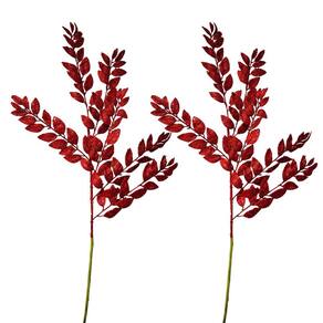 Kit 2 Hastes Folhagem Natalina Decor Vermelho com Glitter 85cm
