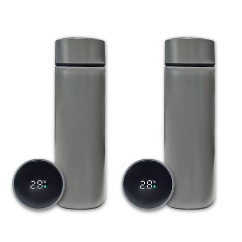 Kit 2 Garrafa Térmica Aço Inox Termômetro Digital Led 500ml Cinza