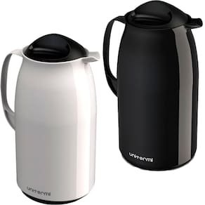 1 Garrafa Térmica Branco com 27cm de altura e 14cm de diâmetro, 1 Litro;1 Garrafa Térmica Preto com 27cm de altura e 14cm de diâmetro, 1 Litro;
