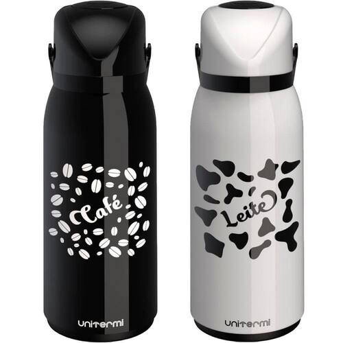 1 Garrafa Térmica Café com 37cm de altura e 14cm de diâmetro, 1,8 Litro;1 Garrafa Térmica ;Leite com 37cm de altura e 14cm de diâmetro, 1,8 Litro;