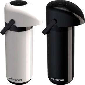 1 Garrafa Térmica Preto com 37cm de altura e 14cm de diâmetro, 1,8 Litro;1 Garrafa Térmica Branco com 37cm de altura e 14cm de diâmetro, 1,8 Litro;