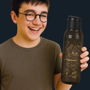 O Kit Contém: 2 Garrafas de Água Tupperware Eco Tupper Redonda Plus Harry Potter com 750ml cada unidade.