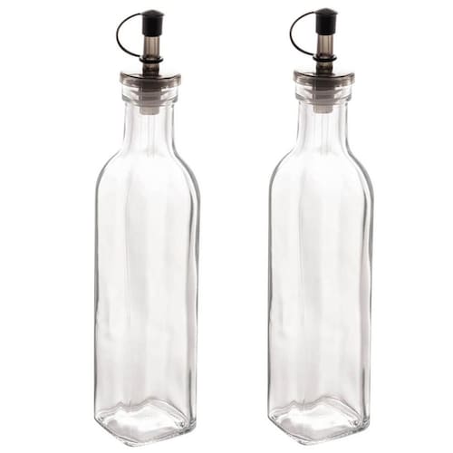 Kit 2 Garrafas de Vidro para Azeite ou Vinagre 270ml com Bico Dosador e Tampa Lyor.
